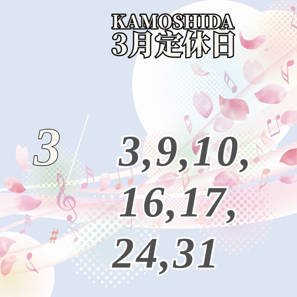 今月の定休日です